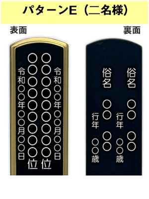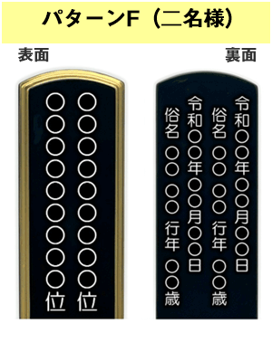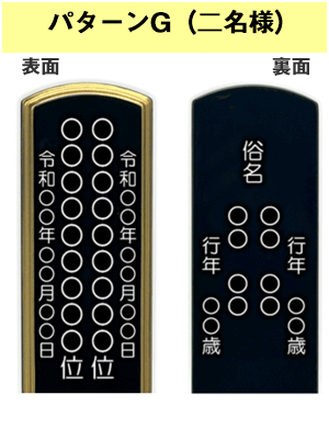 商品番号 | 寸法 | 総高(cm) | 彫り無し(税込) | 1名彫り(税込) | 2名彫り(税込) |